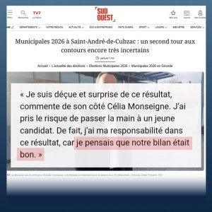 🔴 À Saint-André-de-Cubzac, la maire socialiste sortante pensait que son “bilan était bon” ? 🤨