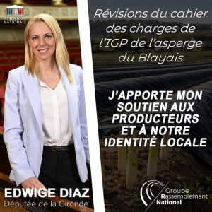 Révisions du cahier des charges de l’IGP de l’asperge du Blayais : j’apporte mon soutien aux producteurs et à notre identité locale