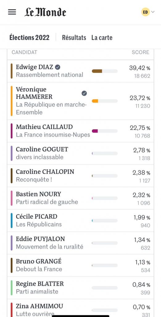 Actualités🗳️ 12 juin 2022 Il y a 1 an, vous me faisiez l’honneur de me… Posted on 12 juin 2023 by Edwige Diaz 12 Juin Continuer la lecture →