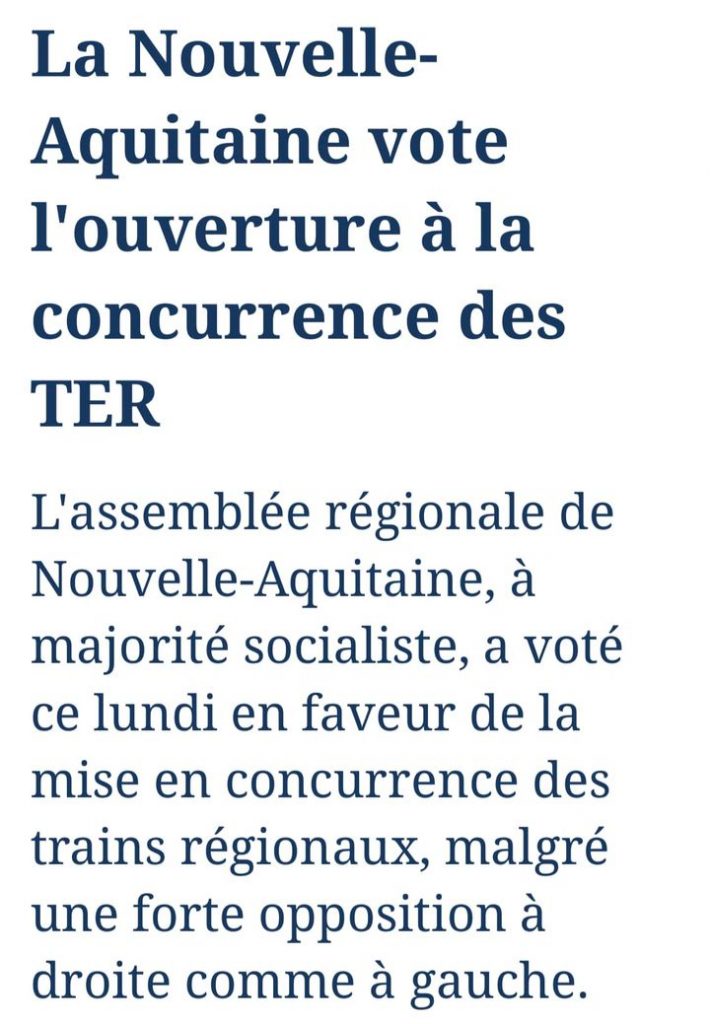Actualités🎙️ Ouverture à la concurrence des TER en Nouvelle-Aquitaine : « Je souhaite une union… Posted on 12 juin 2023 by Edwige Diaz 12 Juin Continuer la lecture →