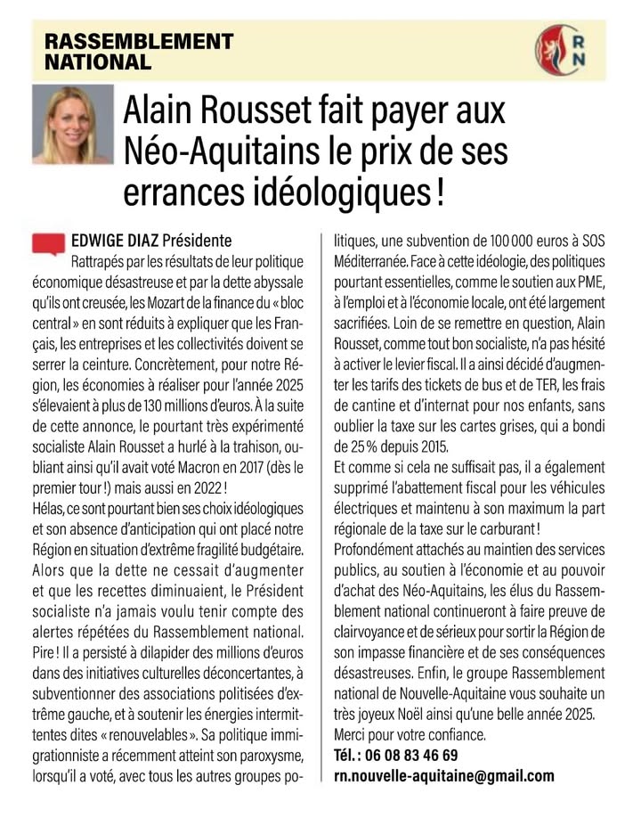 Retrouvez mon édito, au nom du groupe Rassemblement National – Nouvelle Aquitaine