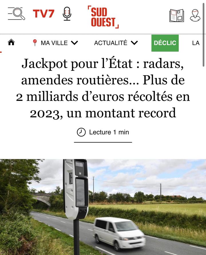 https://www.sudouest.fr/jackpot-pour-l-etat-radars-amendes-routieres-plus-de-2-milliards-d-euros-recoltes-en-2023-un-montant-record-19538676.php