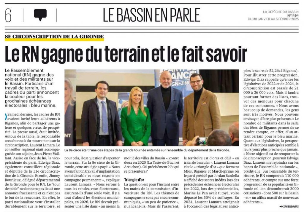 📰 Sur le Bassin d’Arcachon, avec Laurent Lamara et son équipe, le Rassemblement National nourrit de grands espoirs.