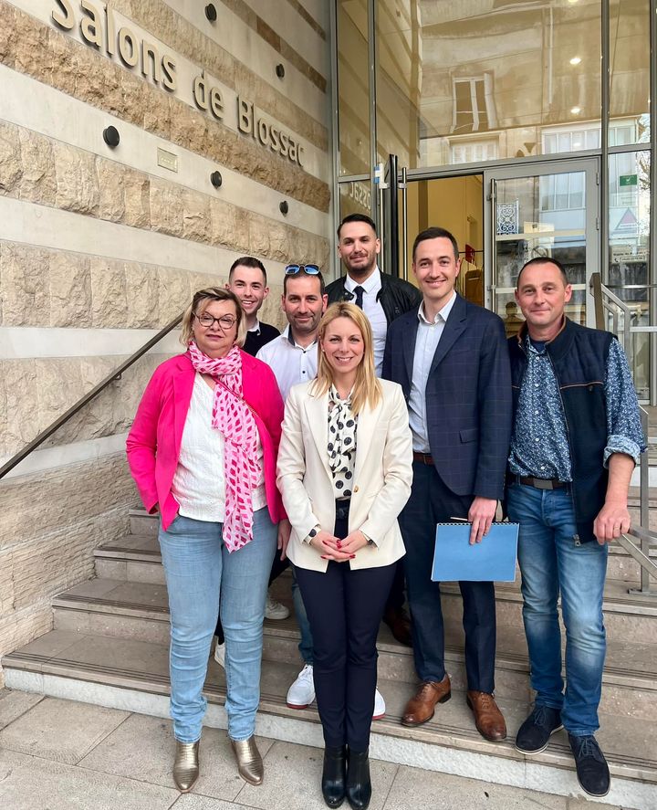 Bien arrivée à Poitiers, entourée de Courtois Kevin et de militants du Rassemblement National de la Vienne, pour soutenir la candidature de Jordan Bardella, dans le cadre d’un débat organisé par le Mouvement Européen-France !