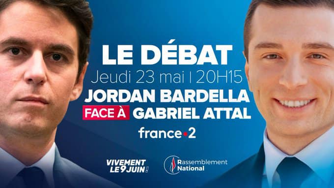 ⚡️ Alors qu’il vient d’atteindre un nouveau record d’intentions de vote (33% !), Jordan Bardella sera ce soir en débat face au Premier Ministre de Macron. 📺 À 20h15, tous devant France 2 pour soutenir Jordan ! #Lévénement #VivementLe9Juin !
