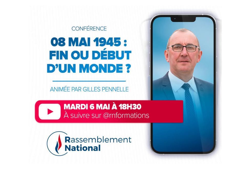 🇫🇷 À l’avant-veille du #8Mai, Gilles Pennelle, professeur d’histoire et député européen du Rassemblement National, a le plaisir de vous proposer une conférence intitulée : « 8 mai 1945 : fin ou début d’un monde ? » Rendez-vous ce soir à 18h30 sur notre chaîne YouTube : 💻https://www.youtube.com/@RNFormations