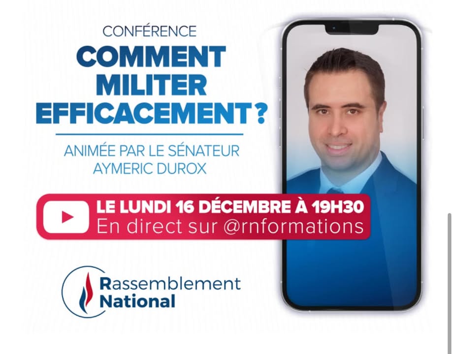 🤓 Rappel ! Ce soir, le pôle formation du Rassemblement National vous donne rendez-vous avec Aymeric Durox pour une conférence consacrée au militantisme. Connectez-vous ici 👉 https://youtube.com/@rnformations?si=uPd7x86pHlIgcgsQ