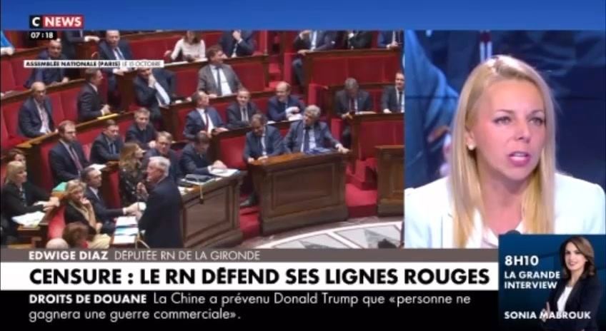 📺 Comme à son habitude, Marine Le Pen agit avec responsabilité. Elle a indiqué à M. Barnier que si son budget aggravait la situation sociale et financière du pays, ne répondait pas aux besoins des agriculteurs ni aux attentes des Français, le Groupe Rassemblement National voterait la censure.