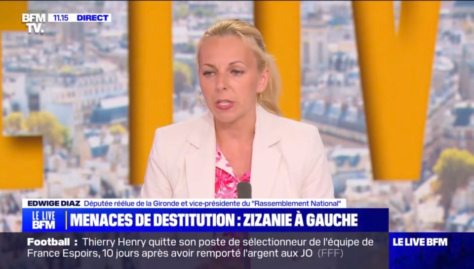 📺 Faire croire aux Français qu’Emmanuel Macron peut, en l’état actuel du paysage politique, être destitué, c’est se moquer d’eux ! https://www.bfmtv.com/amp/politique/edwige-diaz-rn-la-posture-adoptee-par-jean-luc-melenchon-d-essayer-de-faire-croire-qu-une-destitution-est-possible-est-profondement-malhonnete_VN-202408200282.html