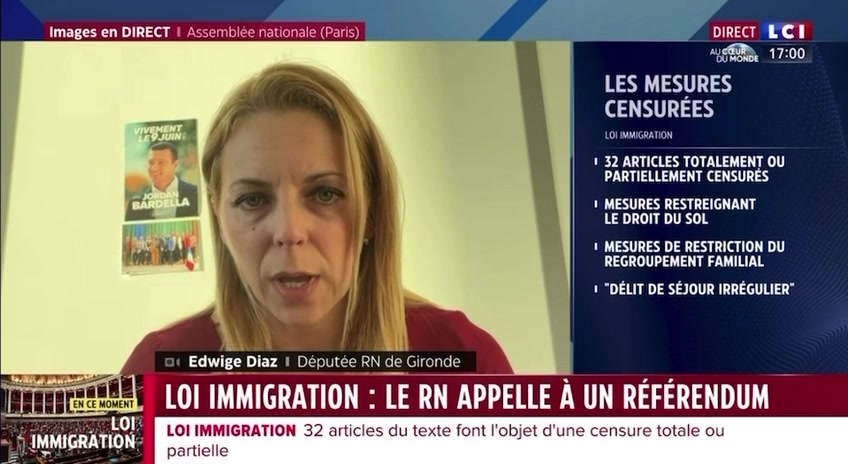 📺 En censurant la #LoiImmigration, le Conseil constitutionnel méprise et le travail du Parlement et la volonté du peuple français. Marine Le Pen avait raison : organisons un référendum constitutionnel sur l’immigration !