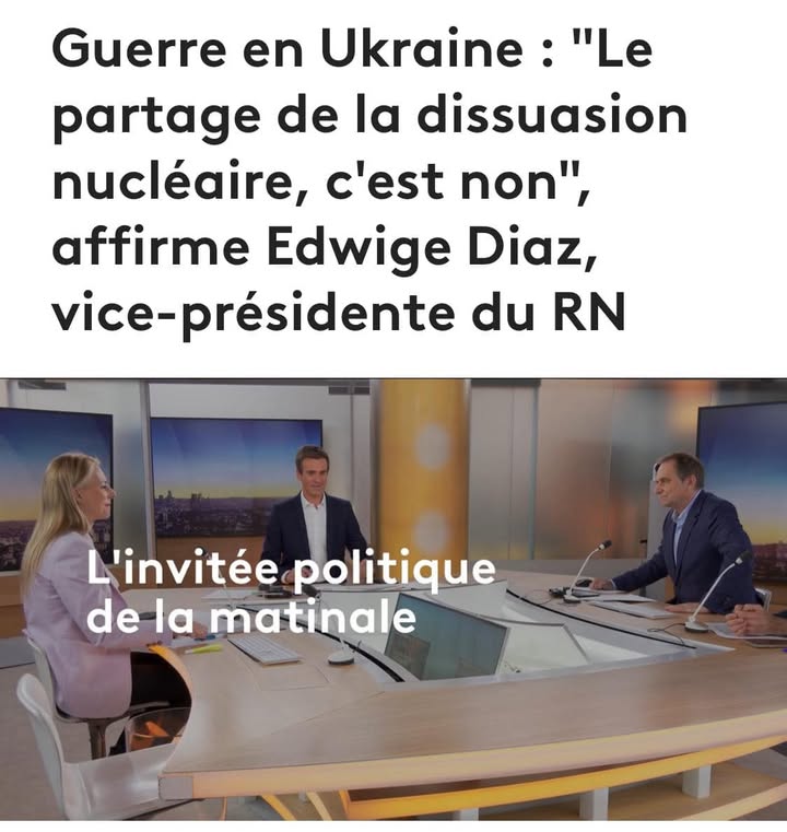 📺 Le Rassemblement National s’est toujours opposé au partage de la dissuasion nucléaire française. Partager, c’est affaiblir la France sur la scène internationale. Mon interview sur Franceinfo du lundi 3 mars 2025 👉 https://www.francetvinfo.fr/replay-magazine/franceinfo/l-invite-politique/l-invite-politique-du-lundi-3-mars-2025_7067825.html#xtor=CS2-765-%5Bautres%5D-