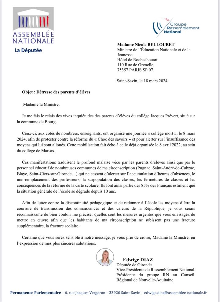 Crise scolaire en Gironde : Interpellation de la Ministre de l’Education Nationale