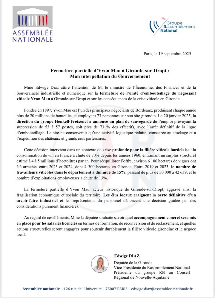 Pour défendre les salariés, qui contribuent à l’image de marque de notre viticulture, j’ai écrit au Gouvernement ⬇️