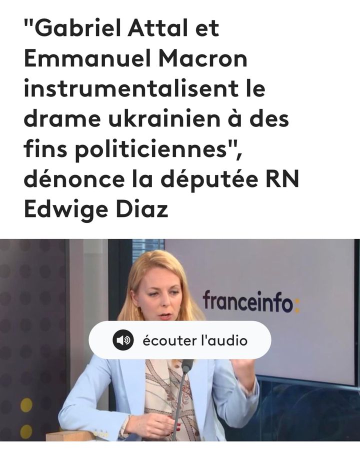 https://www.francetvinfo.fr/replay-radio/19h20-politique/gabriel-attal-et-emmanuel-macron-instrumentalisent-le-drame-ukrainien-a-des-fins-politiciennes-denonce-la-deputee-rn-edwige-diaz_6392095.html#xtor=CS2-765-%5Bautres%5D-