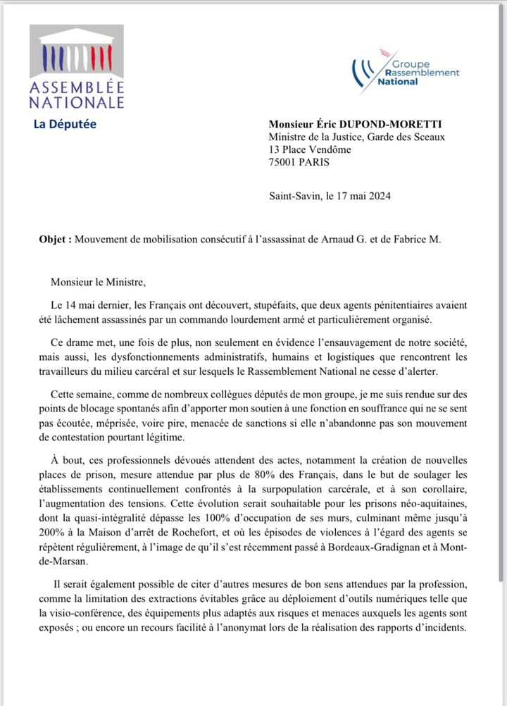 À la suite du drame qui a frappé la pénitentiaire, j’ai écrit à Éric Dupond-Moretti.
