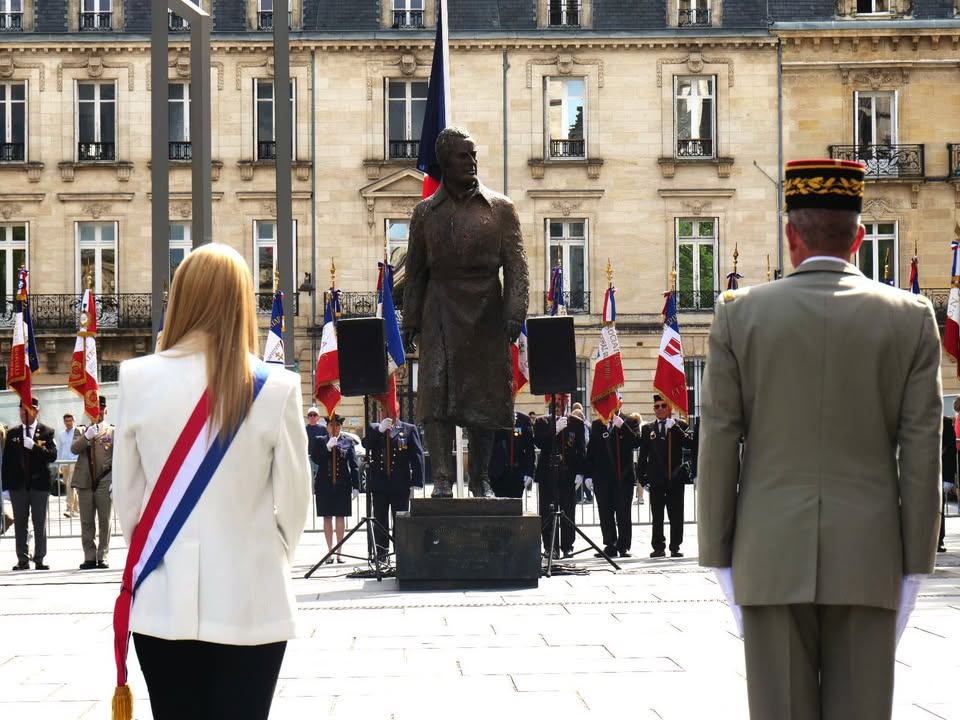 🇫🇷 Devant la statue de Jacques Chaban Delmas, à Bordeaux, j’ai honoré les valeurs portées par le Conseil national de la Résistance : courage, défense de la République, attachement à la justice, respect d’autrui, solidarité…