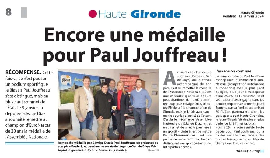 📰 Parce qu’il est un sportif de très haut niveau qui fait rayonner notre territoire, j’ai décidé de remettre la médaille de l’Assemblée Nationale à Paul Jouffreau Racing !