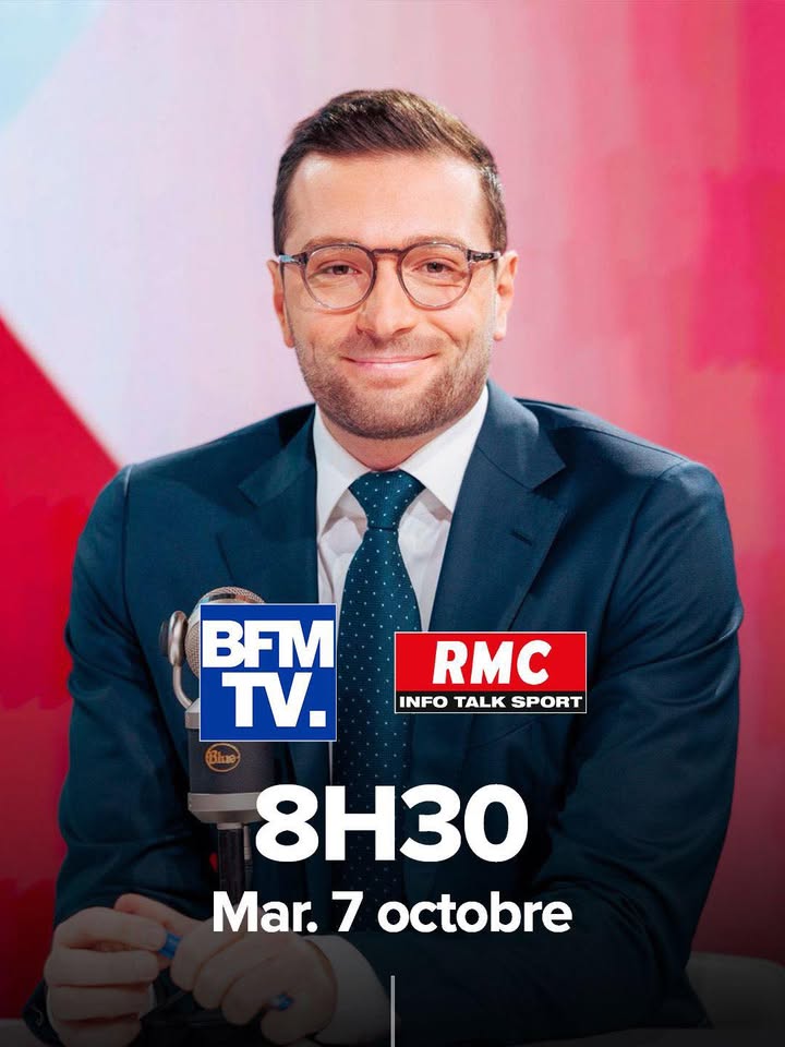 06 Oct Dans les médiasJordan Bardella en direct demain matin sur BFM TV et RMC ! Posted on 6 octobre 2025 by Edwige Diaz 📺Retrouvez Jordan Bardella demain matin à 8h30 sur BFM TV et RMC ! Pour un avenir meilleur, changeons de cap !