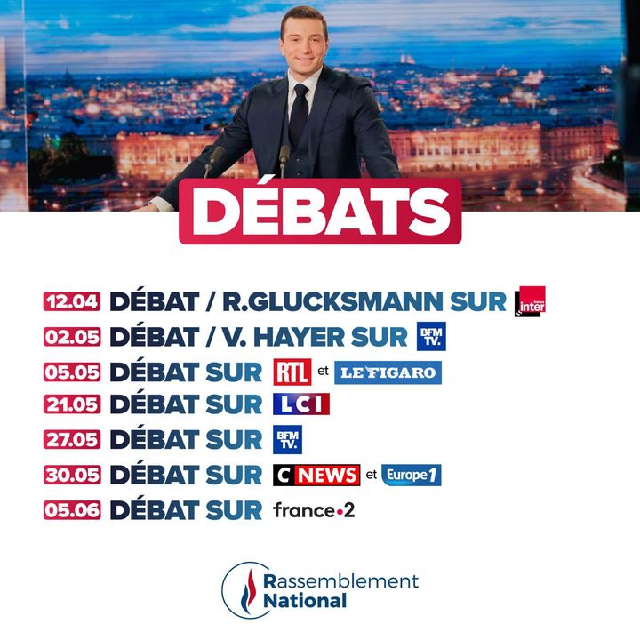 🗓️ Pour ceux qui ont hâte d’entendre Jordan Bardella porter la voix des Français et défendre les intérêts de la France face à l’Europe de Macron, nous vous donnons de nombreux rendez-vous !