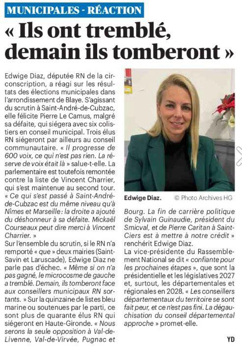 🗳️ #Municipales2026 : avec une quarantaine d’élus, le Rassemblement National est la seule opposition en Haute-Gironde. La gauche n’a pas fini de trembler !