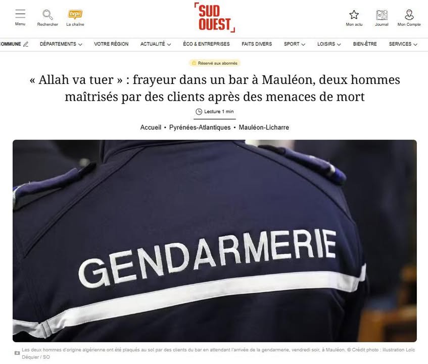 🔪 Armés, 2 frères d’origine algérienne, connus de la justice, ont menacé des clients d’un café à Mauléon, où se trouvaient des familles, dont une femme enceinte et des enfants.