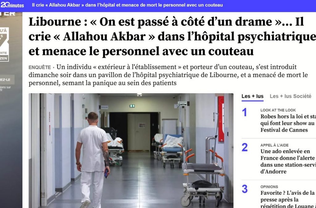 Dimanche soir, un individu s’est introduit à l’hôpital psychiatrique Garderose de Libourne, et a crié « Allah akbar » avant de menacer de mort le personnel avec un couteau.