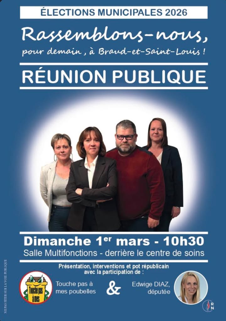 🇫🇷Rendez-vous demain matin pour une réunion publique à 10h30 à Braud-et-Saint-Louis avec notre excellente tête de liste Rassemblement National, Beatrice Roser-Clement !