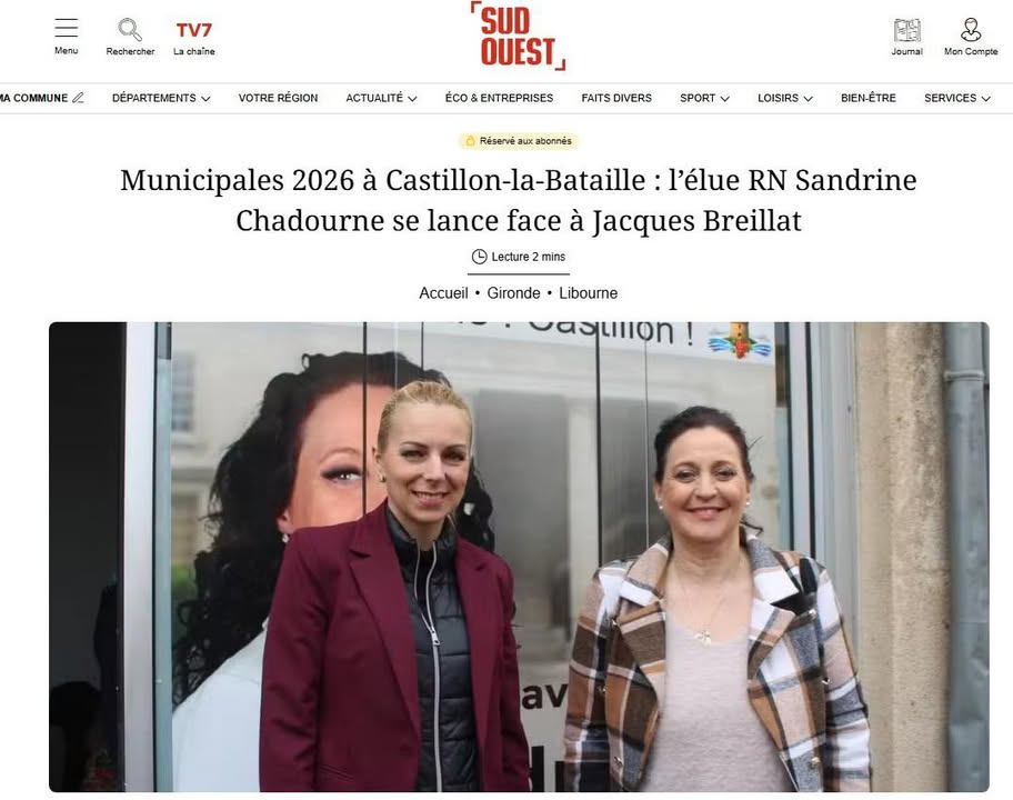 👉 https://www.sudouest.fr/gironde/libourne/municipales-2026-a-castillon-la-bataille-l-elue-rn-sandrine-chadourne-se-lance-face-a-jacques-breillat-27915100.php