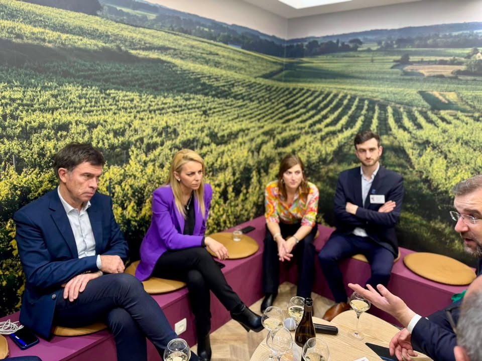 🍇Très heureuse d’avoir échangé au #SIA2026 avec la Confédération Nationale des producteurs de vin et eaux-de-vie de vin à appellation d’Origine contrôlées et mes collègues Gilles Pennelle et Grégoire de Fournas pour soutenir le vin !