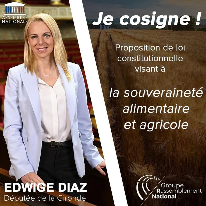 🏛️ Avec mon collègue Hervé de Lépinau et les députés du Groupe Rassemblement National nous voulons inscrire dans la Constitution le principe de souveraineté alimentaire et agricole de la France.