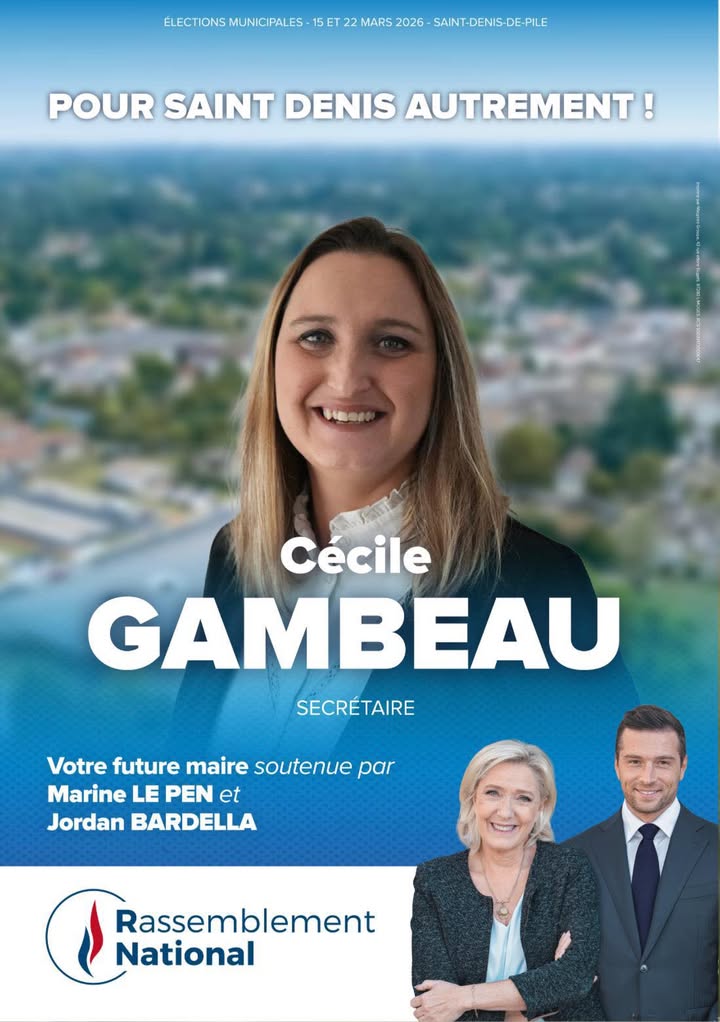 ✅ Un immense bravo à Gambeau Cecile Natacha et à son équipe grâce à qui les habitants de Saint-Denis-De-Pile pourront glisser un bulletin Rassemblement National dans l’urne, ce dimanche 15 mars, seul tour de l’élection municipale !