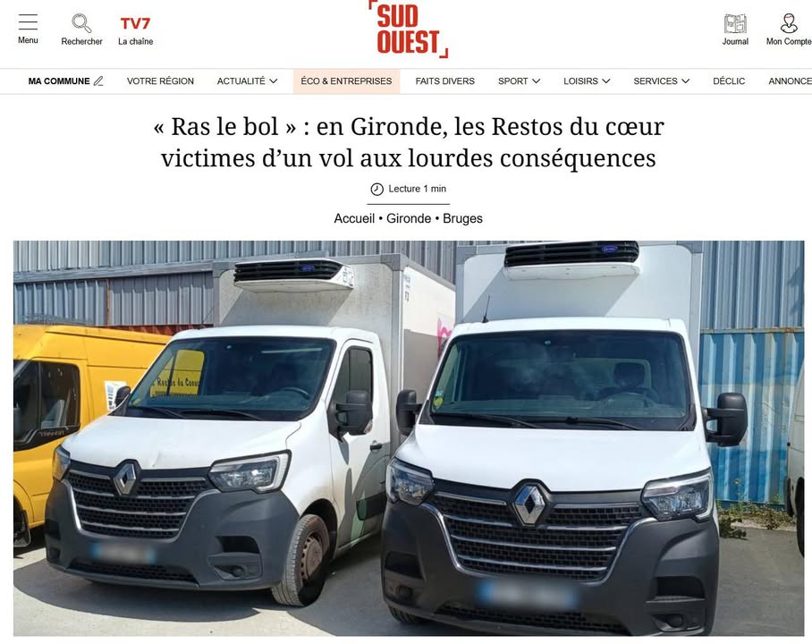 À Bruges, les pots catalytiques de deux camions frigorifiques des Les Restos du Coeur de Gironde ont été volés !