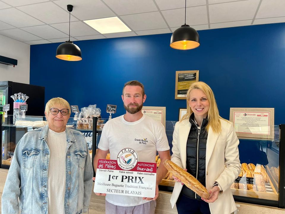 🥖 Félicitations à Yoann Cloarec ainsi qu’à l’équipe du Le fournil de Virsac pour la qualité de leur travail, récompensé par le prix de la « Meilleure Baguette Tradition Française » du Blayais !